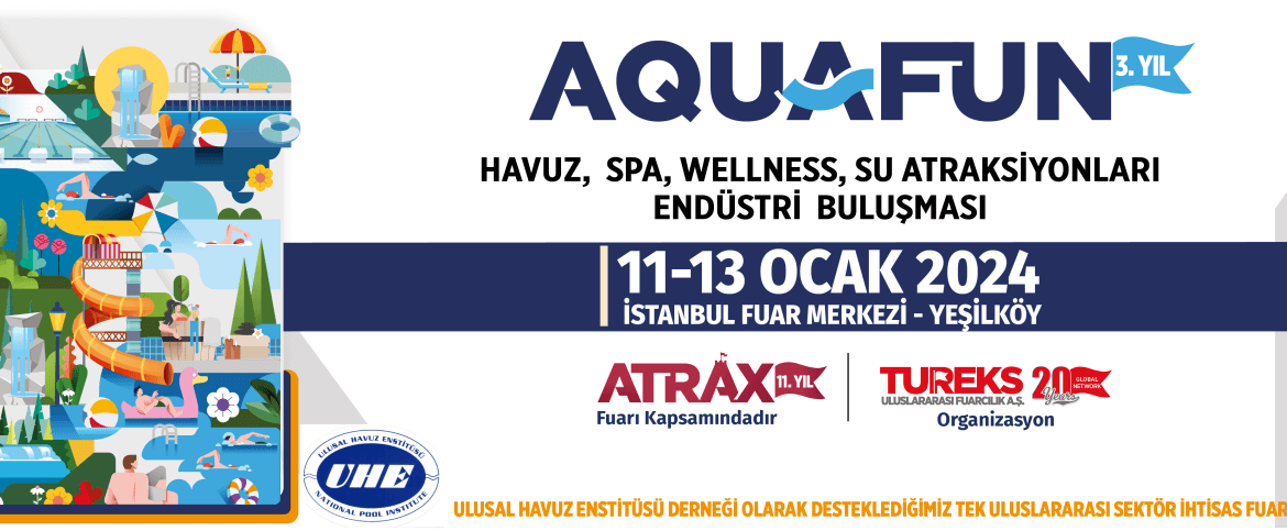 AQUAFUN, 11-13 Ocak 2024 tarihleri arasında 11. Uluslararası ATRAX Fuarı kapsamında 3. buluşmasına hazırlanıyor. ATRAX – AQUAFUN, İstanbul’un hızla büyüyen organizasyonu olarak dikkat çekiyor.